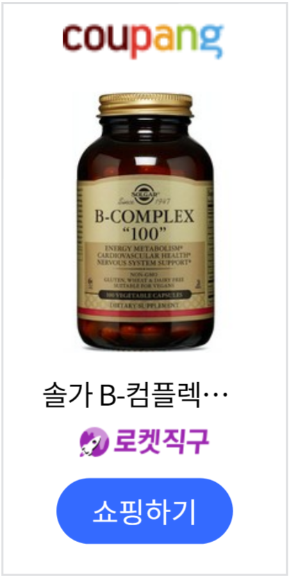 가장 첫 번째로 추천드리는 제품은 '솔가(Solgar)'라는 글로벌 건강기능식품 제조사에서 만드는 비타민b 컴플렉스 제품입니다.