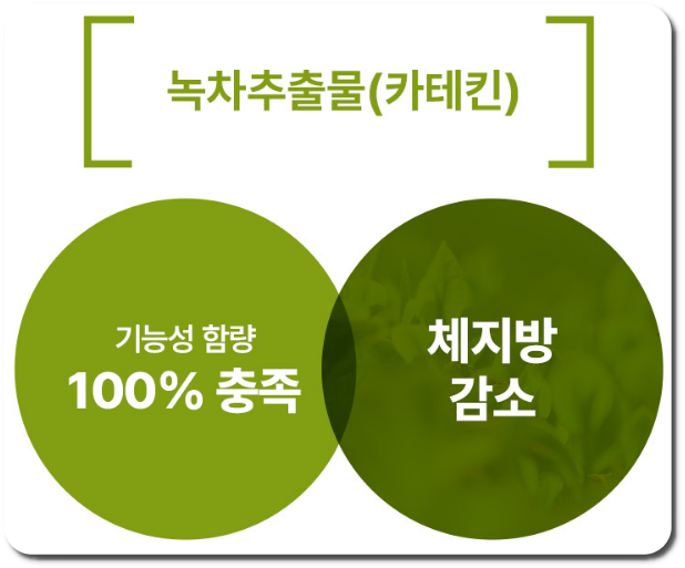 가장 먼저 카테킨은 폴리페놀의 일종으로 체지방감소 · 항산화 · 콜레스테롤 개선에 효과적이며, 실제로도 식약처로부터 이러한 기능성을 인정받은 '기능성 원료'에 해당합니다.