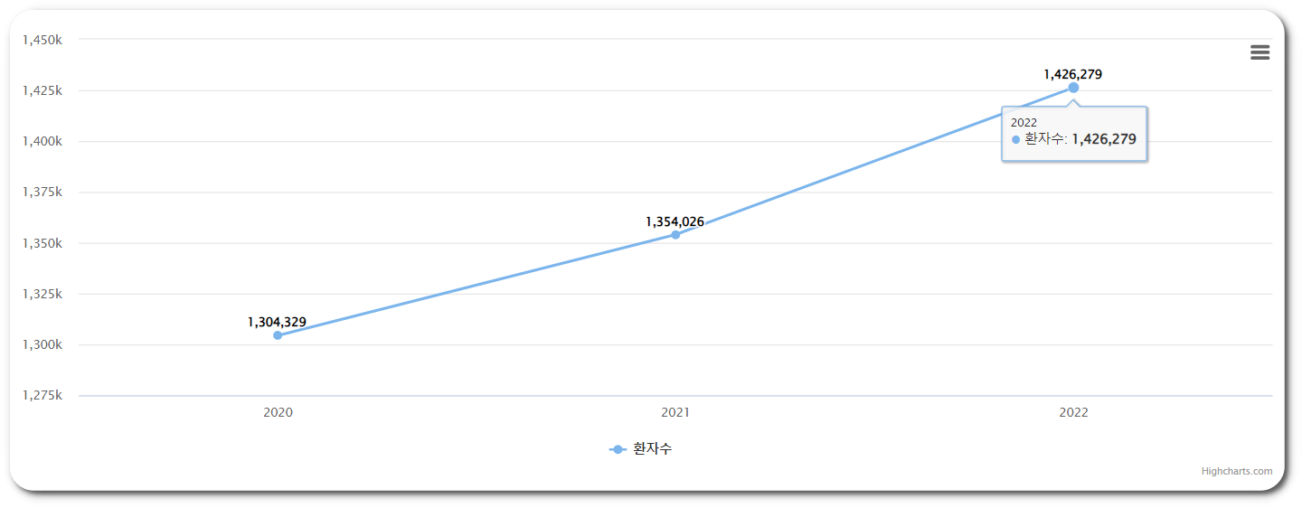 현재 심평원에 따르면 2022년을 기점으로 국내에서 전립선 비대증 환자들은 무려 140만 명에 달했으며, 환자들의 나이는 대부분 50-80대 남성입니다. (아래 통계 참고)