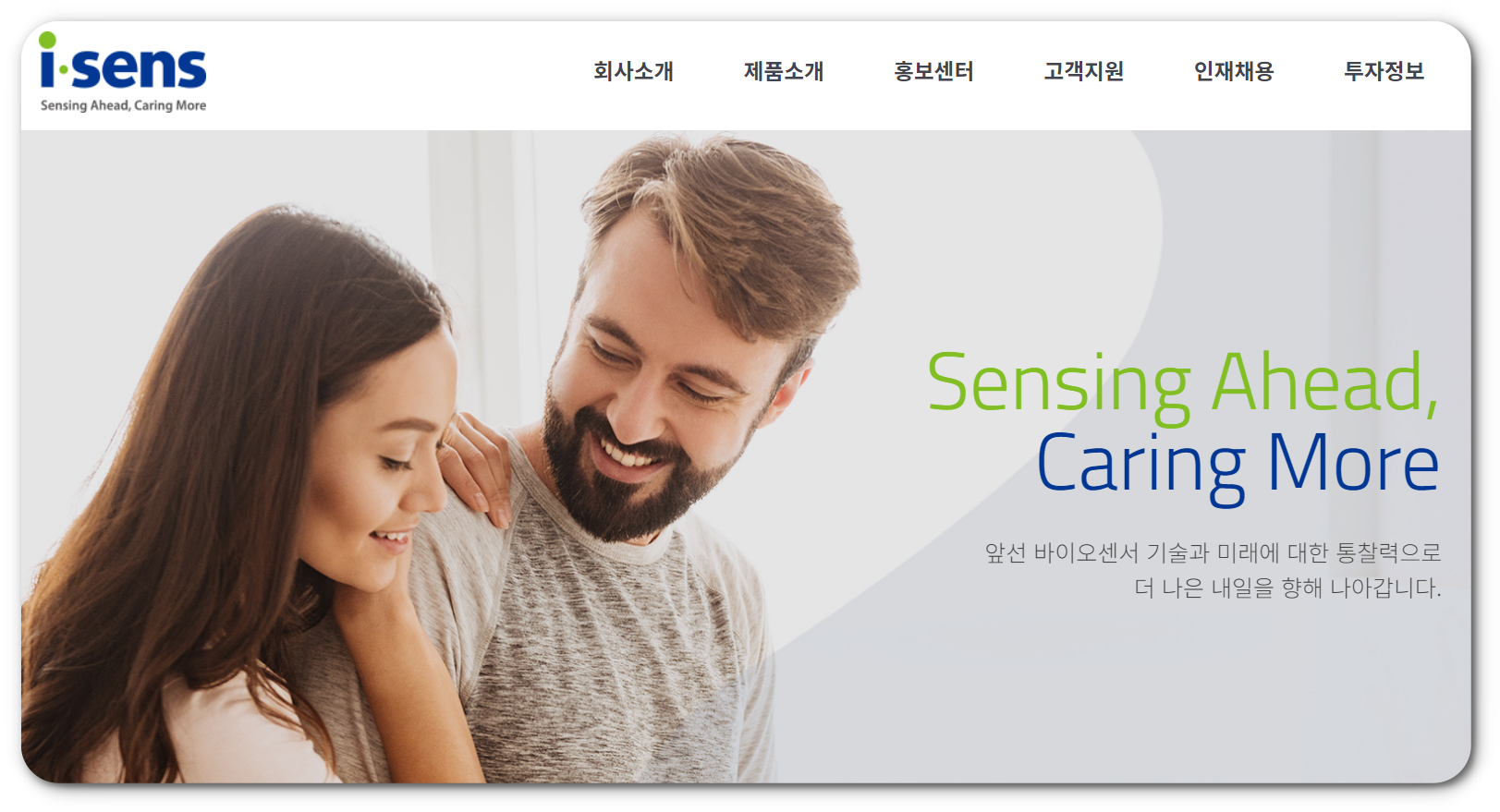 아이센스에서 제조하는 '케어센스 혈당측정기' 라인은 2003년도에 국내에 출시되어서 현재까지도 많은 분들이 사용하시는 가정용 혈당측정기 제품이기도 한데요, 실제로 적은 혈액량으로 빠른 혈당치 측정과 정확도를 기반으로 하여 굉장히 빠르게 성장한 기업 중 하나입니다.